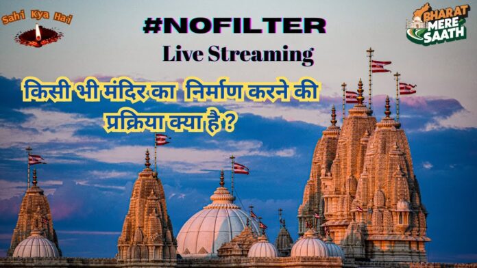 नमस्कार, भारत मेरे साथ चैनल के सीरीज लाइफ नो फिल्टर में आप सभी दर्शकों का स्वागत है। भारत मेरे साथ चैनल में आज का जो विषय है वो है।किसी भी मंदिर का निर्माण करना आज के समय में उसकी प्रक्रिया क्या है और कितना सही है?इस विषय पर बात करेंगे सुरभि सप्रू भारत मेरे साथ चैनल के संचालिका और साथ में जुड़ेंगे अरविंद शाह कीर्ति कांत शर्मा जी जो जम्मू एंड कश्मीर रिसर्च सेंटर, दिल्ली में कार्यरत हैं।और कीर्ति कांत शर्मा जी शारदा लिपि और साथ में अन्य लिपियों पर भी रिसर्च कर रहे हैं। आज मंदिर के निर्माण के विषय में इसलिए बात करना उचित है क्योंकि आज का जो समय है मंदिरों पर विशेष कार्य हो रहा है। जैसे कि अयोध्या के राम मंदिर वाराणसी में भोलेनाथ जी का मंदिर है काशी विश्वनाथ मंदिर अन्य स्थानों पर जम्मू कश्मीर में जो मंदिरों का निर्माण हो रहा है, इन विषयों पर बात करना बहुत ही महत्वपूर्ण विषय है। के मंदिरों का निर्माण किस प्रक्रिया से किस आधार पर काम करना चाहिए?