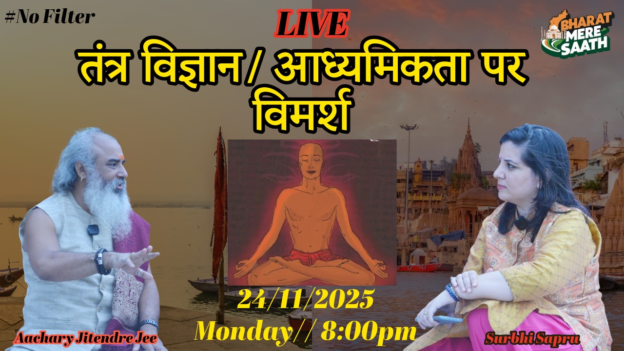 जब हम तंत्र की बात करते हैं तो हमारे मस्तिष्क में हमेशा से एक नकारात्मक की ऊर्जा आती है।और हम ये सोचते हैं कि तंत्र केवल एक वसीकरण है या काला जादू है। लेकिन तंत्र एक विज्ञान है।जिसे समझने के लिए हमने इस विमर्श को चुना है।और इस विषय पर चर्चा करेंगे। भारत मेरे साथ चैनल से सुरभि सप्रू और वाराणसी उत्तरप्रदेश से आचार्य जितेंद्र जी।और यह तंत्र विज्ञान को आध्यात्मिकता से जोड़ेंगे। क्योंकि भारत में तंत्र की जो परंपरा है, यह बहुत ही प्राचीन समय से ये पद्धतियों से परंपरा चलती आ रही है।और इसे समझना समझाना दोनों ही हमारा कर्तव्य है क्योंकि बहुत सारे लोग इसके साधक नहीं होते और बहुत सारे लोग इस विद्या को गलत तरीके से प्रयोग करते और गलत साधना के रूप में इस विद्या को विकसित करते।