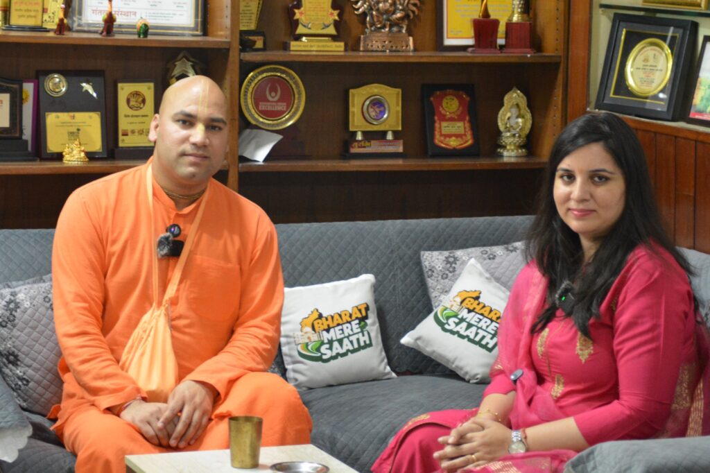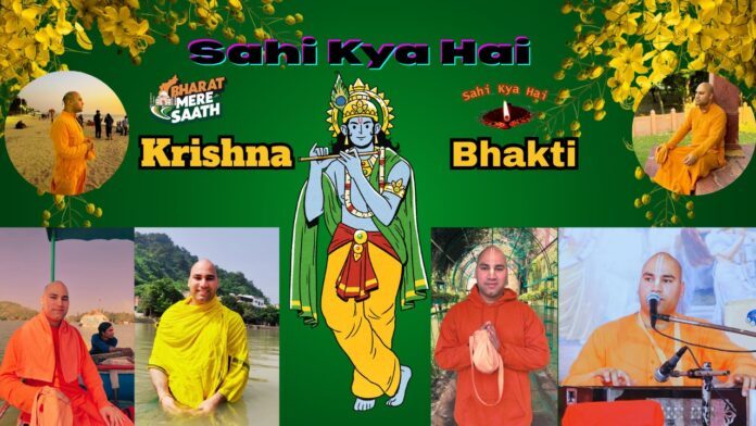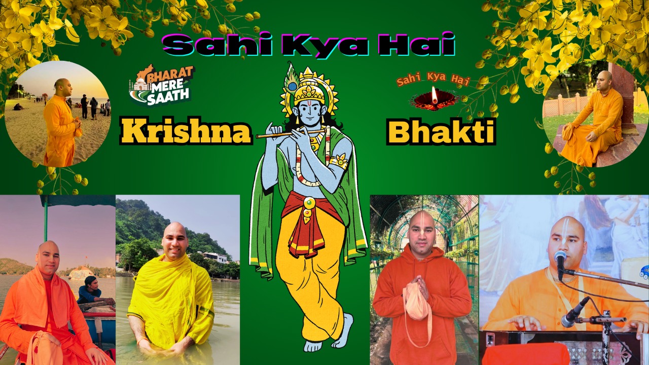 शीर्षक:- नमस्कार भारत मेरे साथ चैनल के सही क्या है सीरीज़ में आप सभी दर्शकों का स्वागतः है।आज का विषय है कि कृष्ण योग, अनुशासन, भक्ति मार्ग और सही सनातन की पद्धति के साथ साथ इस्कॉन मंदिर के संरक्षक श्री प्रभु पाद जी के विषय में भरता मेरे साथ चैनल की संचालिका सुश्री सुरभि सप्रू जी इस्कॉन मंदिर दिल्ली के भक्त लक्ष्मी नरसिंहा प्रभु जी से।